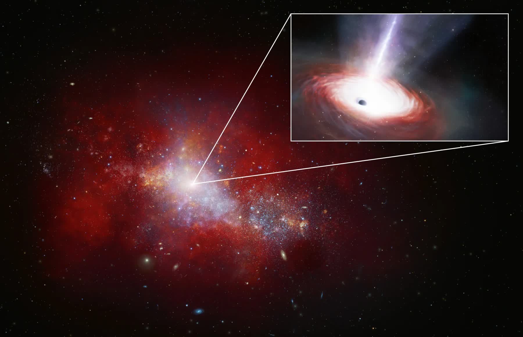 However, it is extremely active and bright in X-ray scans compared to other black holes of its age. Because of the time it takes for light from the distant cosmos to reach Earth, astronomers observe it as it appeared about 1.5 billion years after the Big Bang, which occurred roughly 13.8 billion years ago.