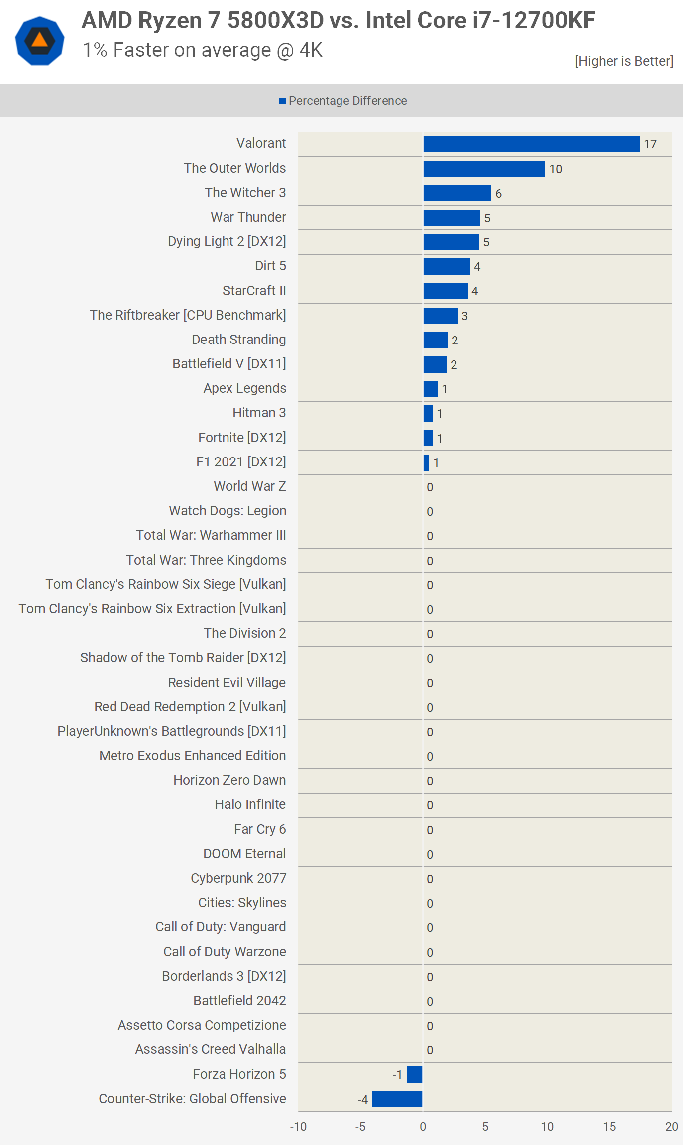 As expected, at 4K the 5800X3D was just 1% faster on average and now the vast majority of the games tested were entirely GPU bound.
