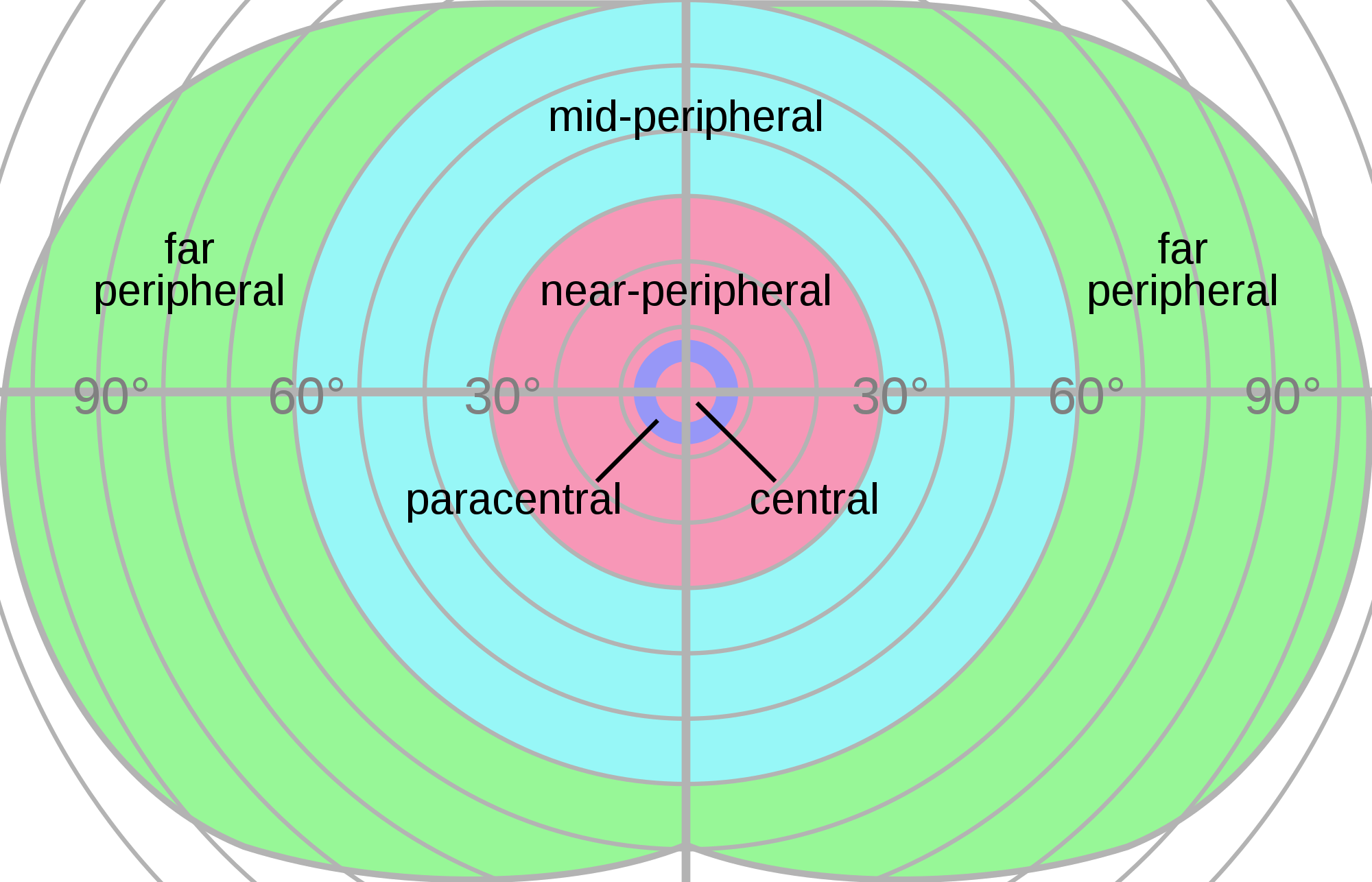 We can get a sense of this from this image that shows the field of human vision: