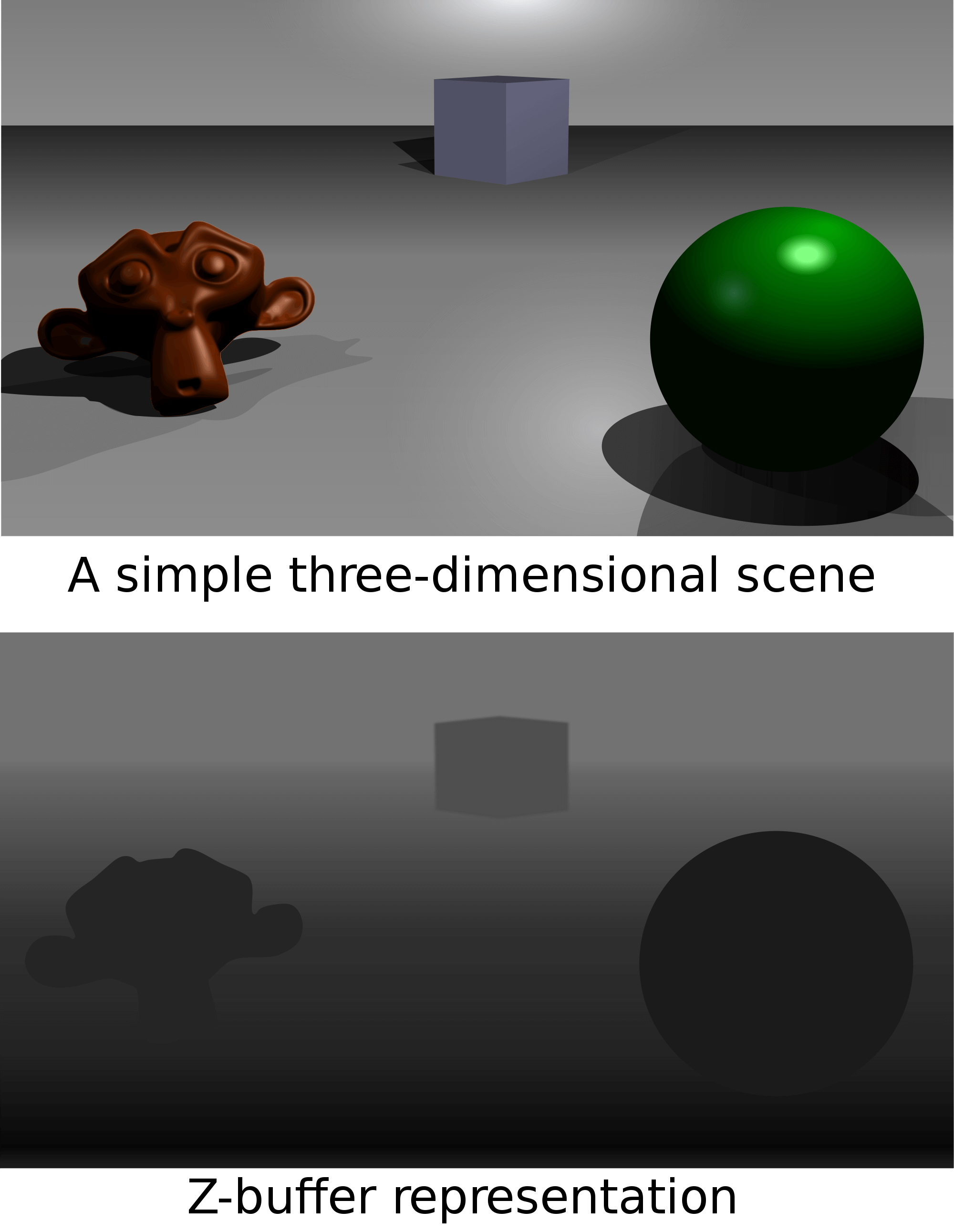 Left to right: scene order, front-to-back rendering, back-to-front rendering
