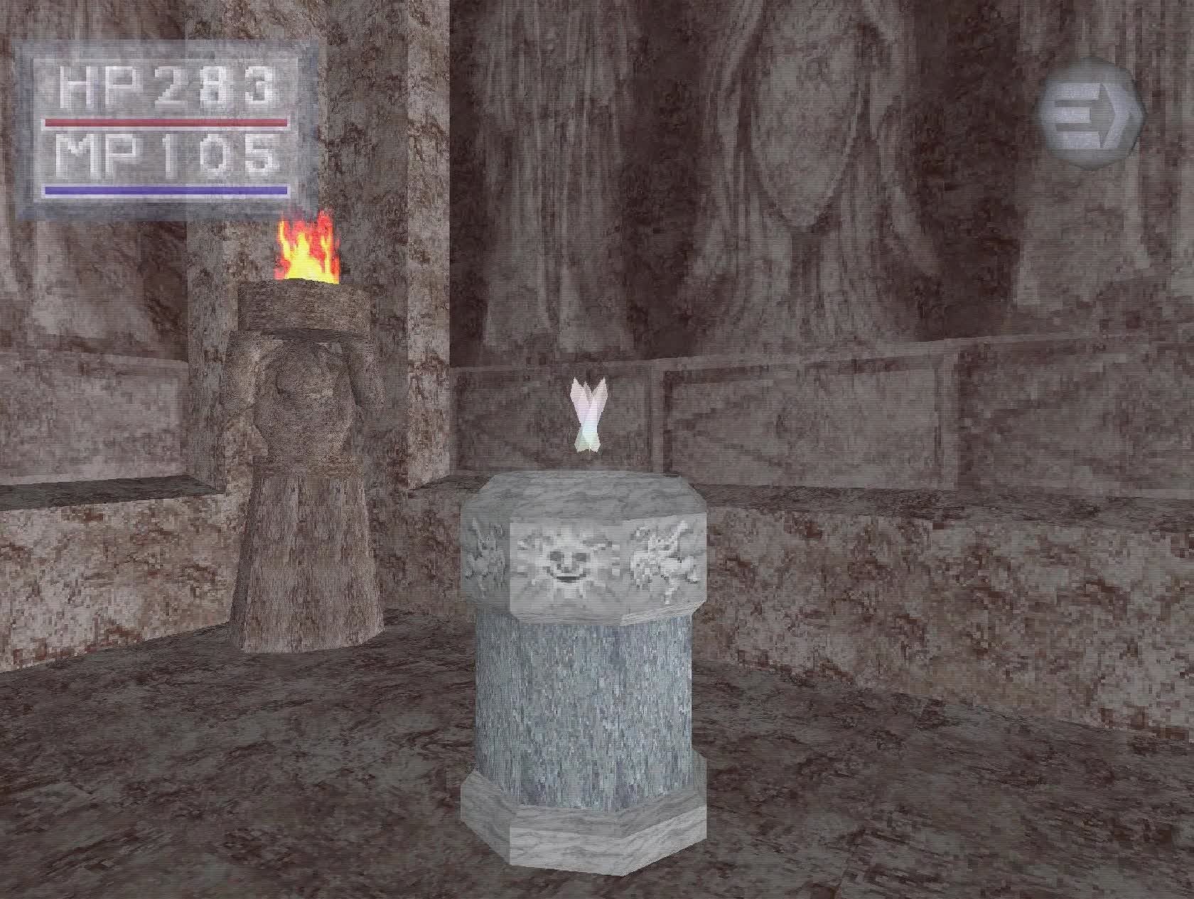 King's Field IV retains the slow pace and low framerate of previous games. The 20 FPS target allowed FromSoftware to bring out technical effects that were, perhaps, ahead of their time. We see dynamic lights, volumetric fog, and high polygon enemy models. Compared to King's Field IV, The Elder Scrolls III: Morrowind, an Xbox RPG that arrived a year later, looks positively primitive in places.
